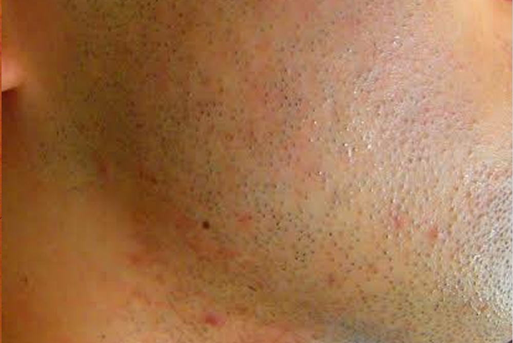 男性特有のひげですが、脱毛効果を得る事は従来難しいとされてきました。モニターAさんは長年濃く太いあご髭に悩まされてきました。ご覧のように無理にヒゲを剃ったことによりお肌が赤みを帯び炎症が生じています。